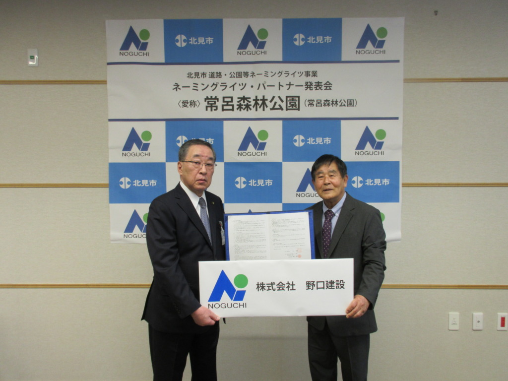 株式会社野口建設は、このたび北見市が実施する「道路・公園等ネーミングライツ事業」において、ネーミングライツ・パートナーとして契約を締結いたしました。